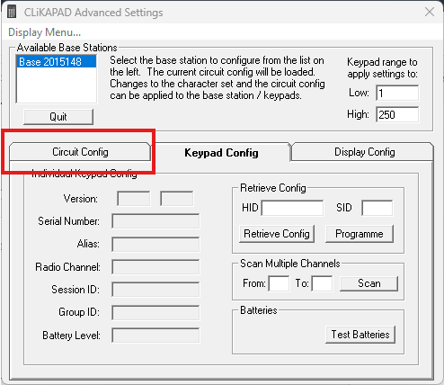 Click on the Circuit Config tab